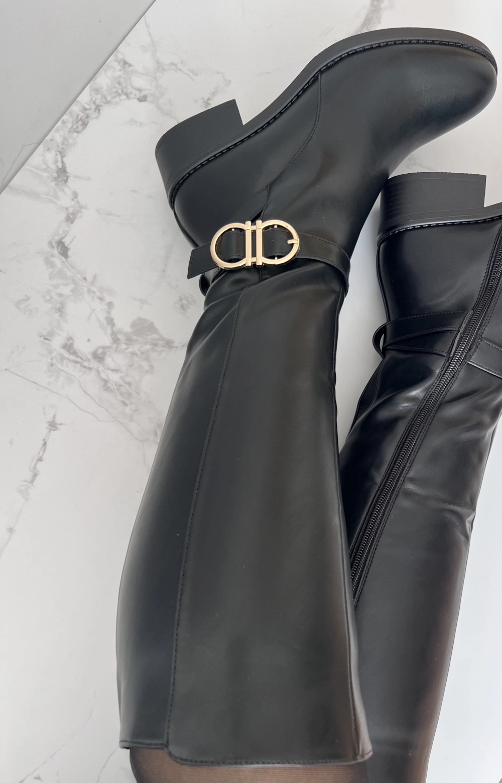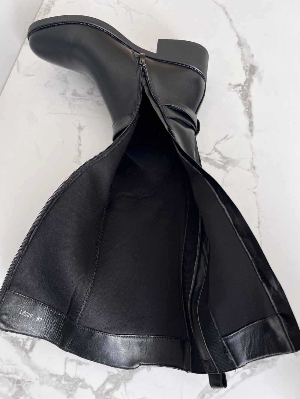 Mustad madala kontsaga saapad. Kummid sääreosas, mis annavad venivust. Suurus 36/23.5cm, 37/24cm, 38/24.5cm, 39/25cm, 40, 41. Suuruse 39 säär laiemast kohast 36cm.