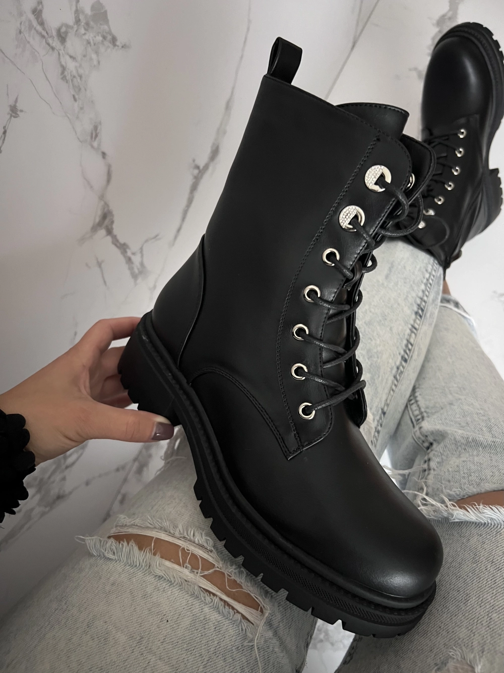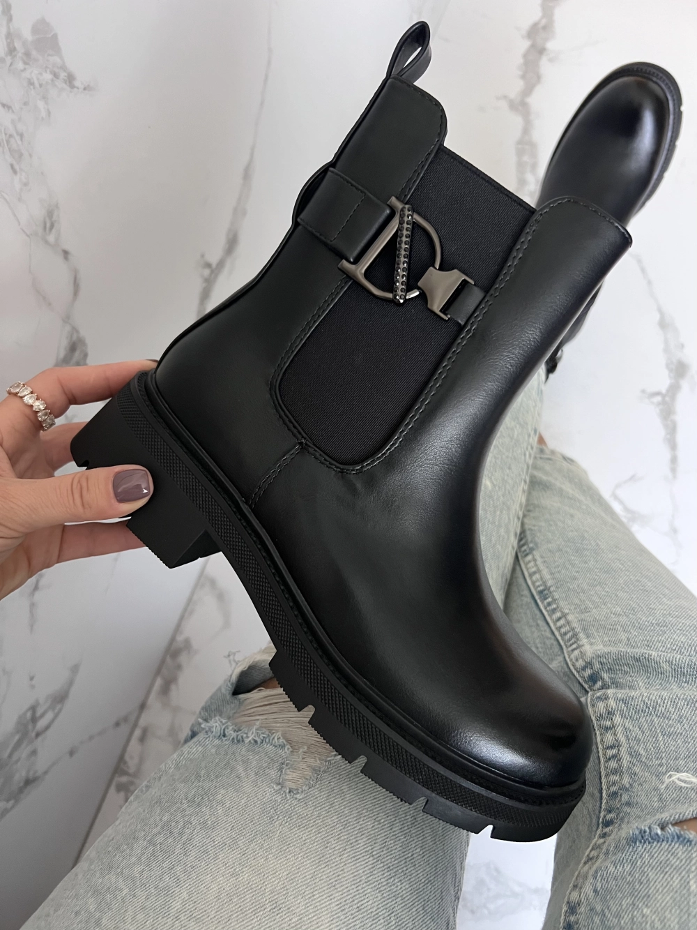 Mustad madala kontsaga saapad. Kummid sääreosas, mis annavad venivust. Suurus 36/23.5cm, 37/24cm, 38/24.5cm, 39/25cm, 40, 41. Suuruse 39 säär laiemast kohast 36cm.