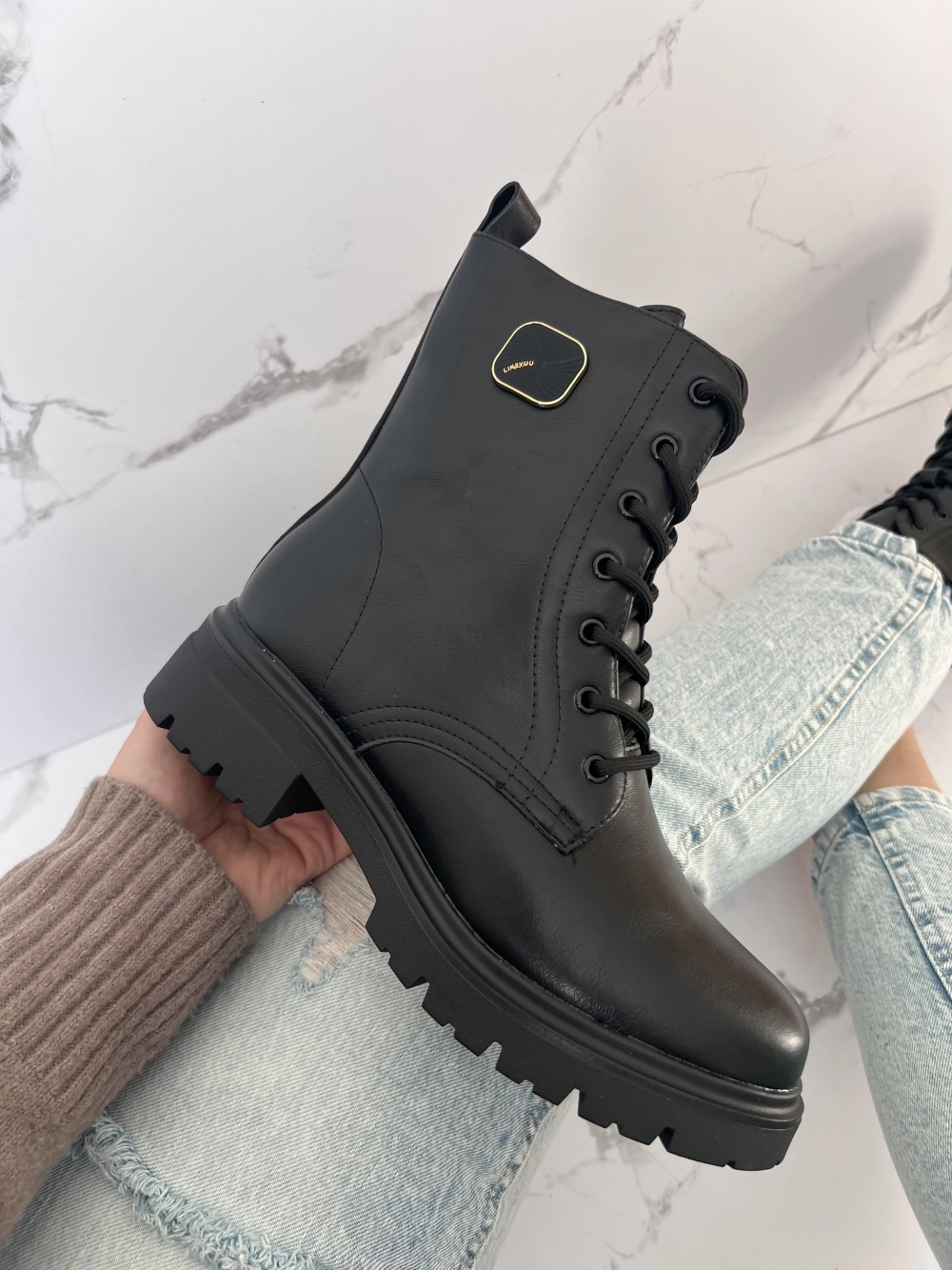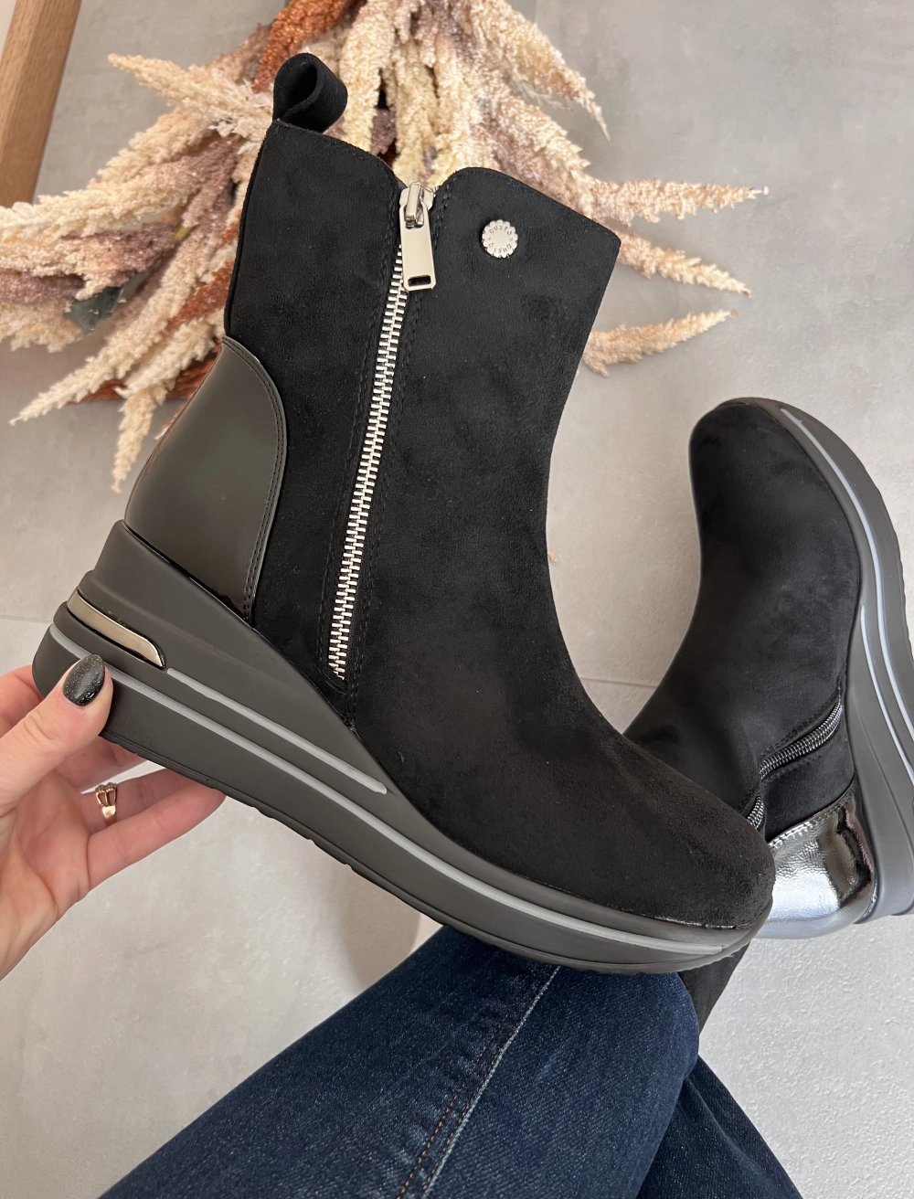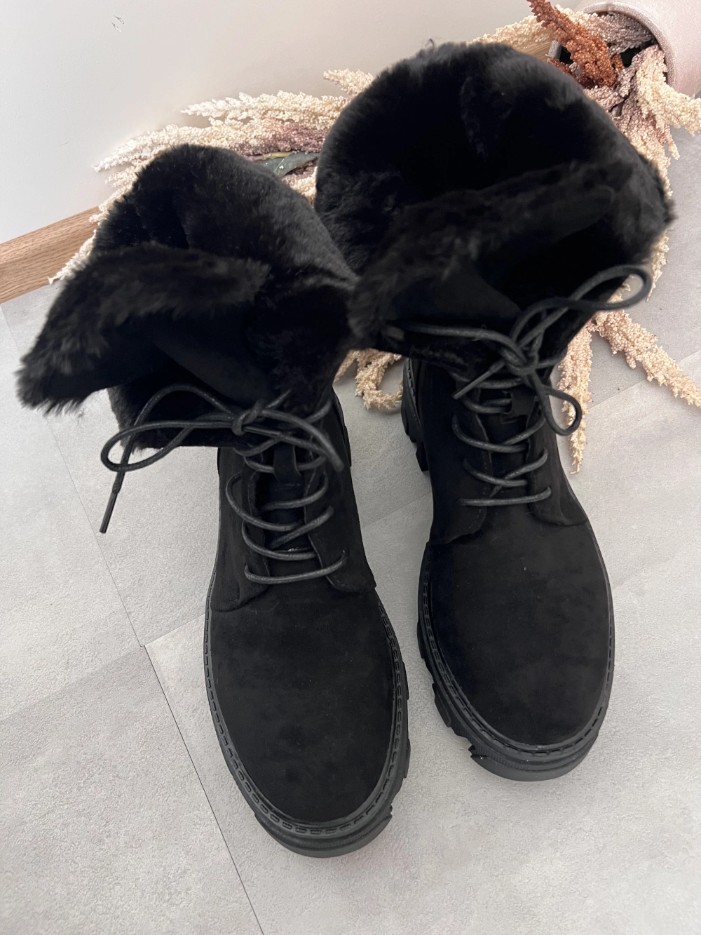 Mõõdud: 36/23cm, 37/23.5cm, 38/24cm, 39/24.5cm, 40/25cm, 41/25.5cm. Seest paksu karvsisuga. Siseküljel lukk
