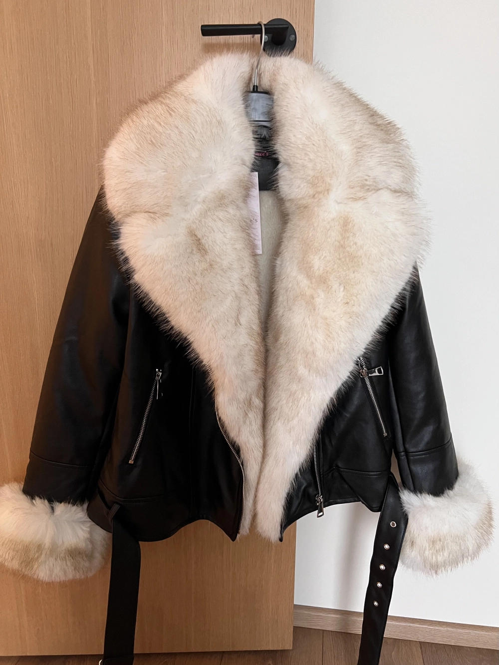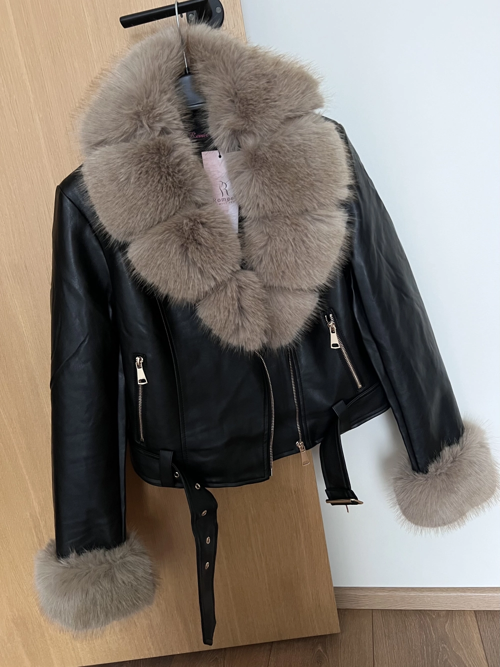 Mõõdud: S üldpikkus ca. 50cm, varruka pikkus õlast ca. 62-63cm, kaenla alt ca. 47cm, rü 2x47cm. . M üldpikkus õlast ca. 51cm, varruka pikkus õlast ca. 64cm, rü ca 2x49cm. L üldpikkus õlast 53cm, varruka pikkus õlast ca. 65-66cm, rü 2x52cm. XL üldpikkus 53-54cm, varruka pikkus õlast ca, 66-67cm, rü ca. 2x55cm. Materjal kunstnahk. Krae ja varruka ääred on jakilt eemaldatavad. Kinnitatud venivate kinnitusaasadega.