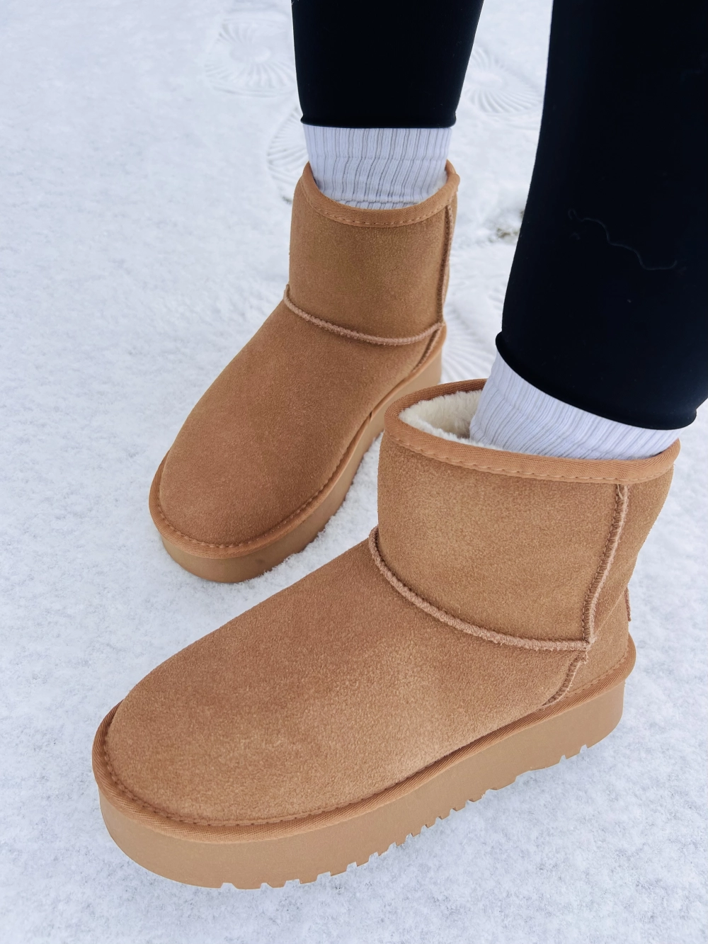Mõõdud: 36/23.5cm, 37/24cm, 38/24.5cm, 39/25cm, 40/25.5cm, 41/26cm. Talla paksus 4-4.5cm. Sääre kõrgus koos tallaga 18cm. Sees paks karvvooder. Naturaalne seemisnahk.